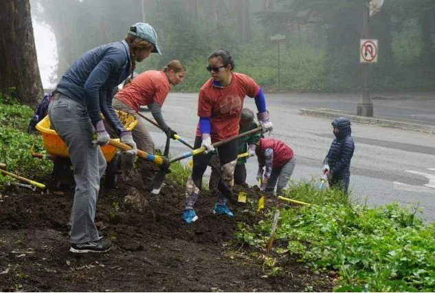 The Civic Joy Fund is choosing a new park every month to show some love through the end of the year. This July, we’re bringing together 35 passionate volunteers every Saturday of the month to beautify Arguello Stub, one of the main entrances of historic Kezar Stadium. We’ll be removing invasive plants, planting new trees and shrubs, installing new drip irrigation and sheet mulching to suppress weed growth.